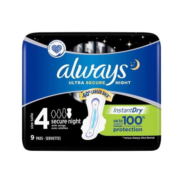 Always Ultra Secure Night Extra With Wings 8S offer extra night coverage with a 60% larger back. This offers even more protection against leakage when you are lying down, no matter how much you may toss and turn throughout the night. Thanks to a super absorbent core with InstantDry system that absorbs wetness in seconds, Always Ultra Sanitary Towels keep you free from leaks. Plus, odour neutralising technology keeps you feeling confidently fresh all night long, while a Flex & Fit system helps your pad contour to your individual body shape.