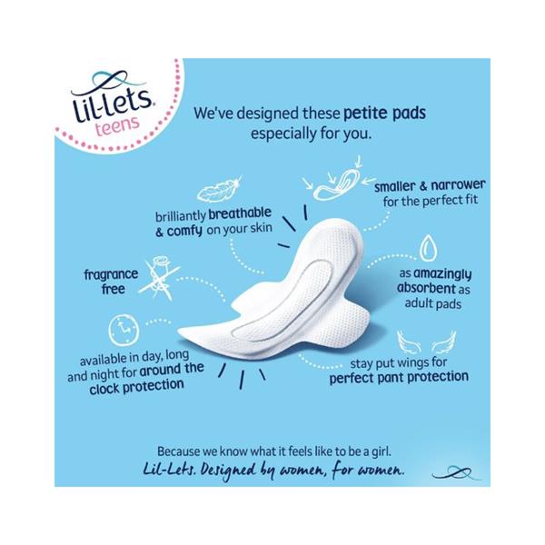 Lil Lets Teens Day Pads 14S specially created for you to use during your first period and the first few years after starting periods.