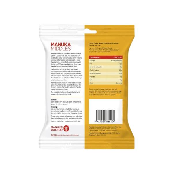 Manuka Doctor Manuka Middles Lozenges 100G are a soothing Manuka Honey & Lemon Lozenge with Zinc.
