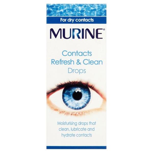 Murine Contacts Refresh & Clean Drops, Moisturising drops that clean, lubricate and hydrate all types of contact lenses as you blink, with no need to remove them.