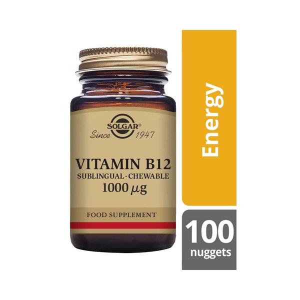 Solgar® Vitamin B12 Sublingual - Chewable 1000 µg Nuggets contain a 1000 µg of the cyanocobalamin form of Vitamin B12.