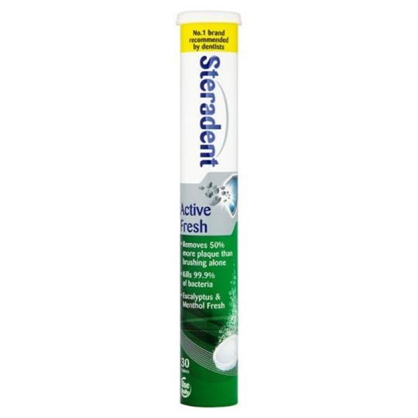 Steradent Active Fresh are formulated specifically for individuals who wear dentures as these cleansing tablets will help to fight discolouration and stains caused by certain food and drinks; these tablets are anti-bacterial which means your dentures will be cleansed throughly – ready for your next wear.