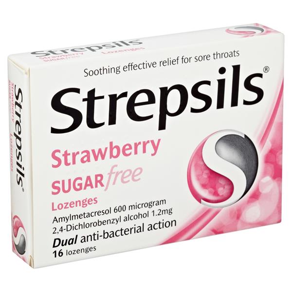 Strepsils Strawberry Sugar Free Lozenges provide fast, soothing and effective relief from the discomfort of sore throats. Each lozenge contains a combination of 2 anti-bacterials to help kill the bacteria which can cause sore throats and mouth infections. Strepsils Strawberry Sugar Free Lozenges are suitable for use by people with diabetes.