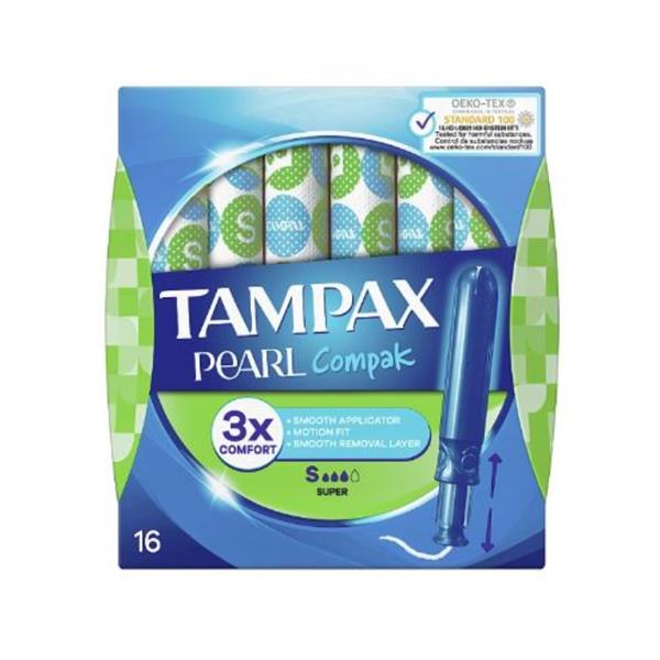 Tampax Pearl Compak tampons are our best tampons for comfort, protection and discretion. They are free from fragrances. Tampax Pearl Compak tampons come with a compact and discreet smooth plastic applicator and rounded tip for comfortable insertion. Its contoured Anti- Slip Grip makes the applicator easy to hold and position. Tampax Pearl Compak has MotionFit technology that gently expands to fit your body’s unique shape. Additionally there is a LeakGuard braid that helps stop leaks before they happen. Tampax Pearl Compak have bold and colourful wrappers that are easy to open, purse resistant and open silently for full discretion. Tampax Pearl Compak Regular is our best tampon for regular absorbency. Tampax Pearl Compak tampons have been gynaecologically tested. They have also been independently tested for harmful substances by Oeko-Tex.